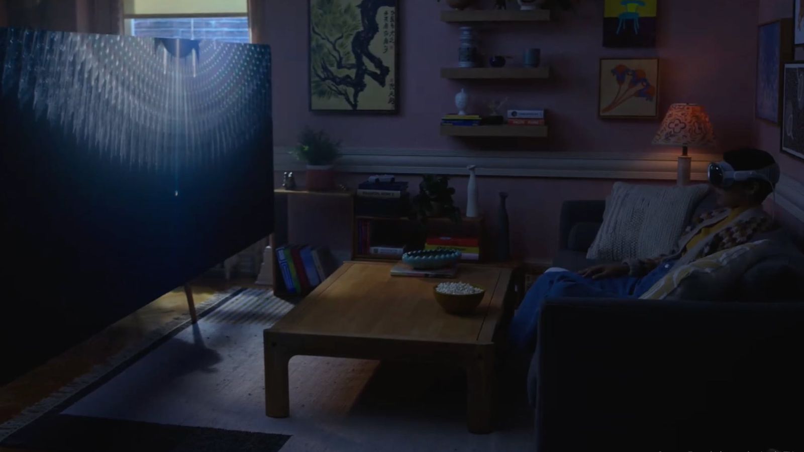 Apple TV+와 같은 콘텐츠 앱을 통해 visionOS는 100피트 너비의 개인 영화 화면에 TV 프로그램과 영화를 표시할 수 있으며, 또한 visionOS는 180도 고해상도 녹화인 Apple 몰입형 비디오를 제공합니다. visionOS는 Apple Vision Pro의 스피커를 통해 공간 오디오를 지원합니다.