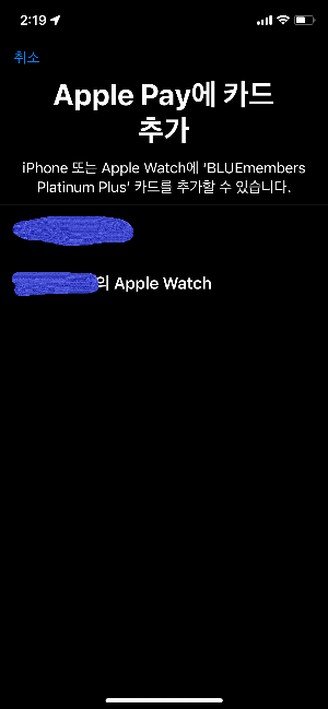 - 카드 추가 중이며 Apple Pay에 사용할 카드 설정 중이라는 메시지가 나옵니다.